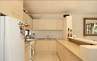 After Kitchen Renovation:  Open, flowing space that is now a delight to live in.
