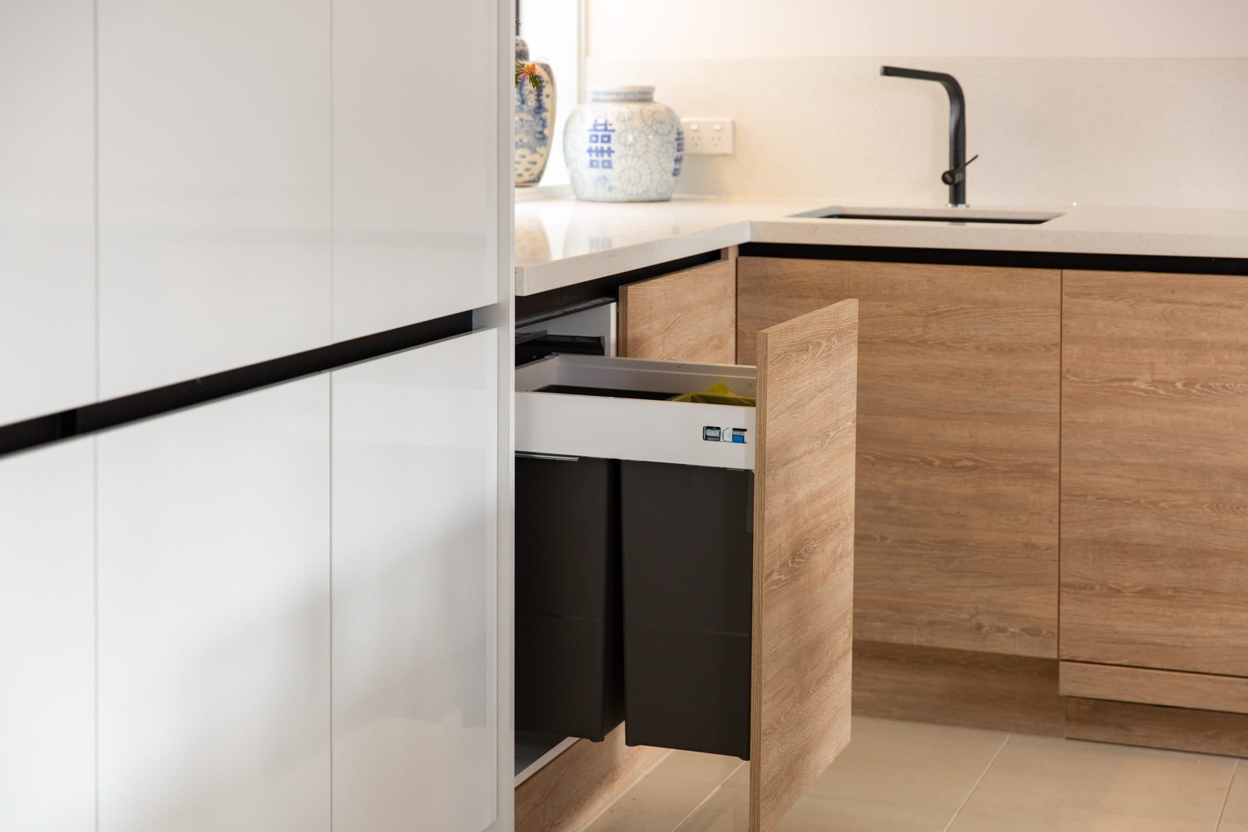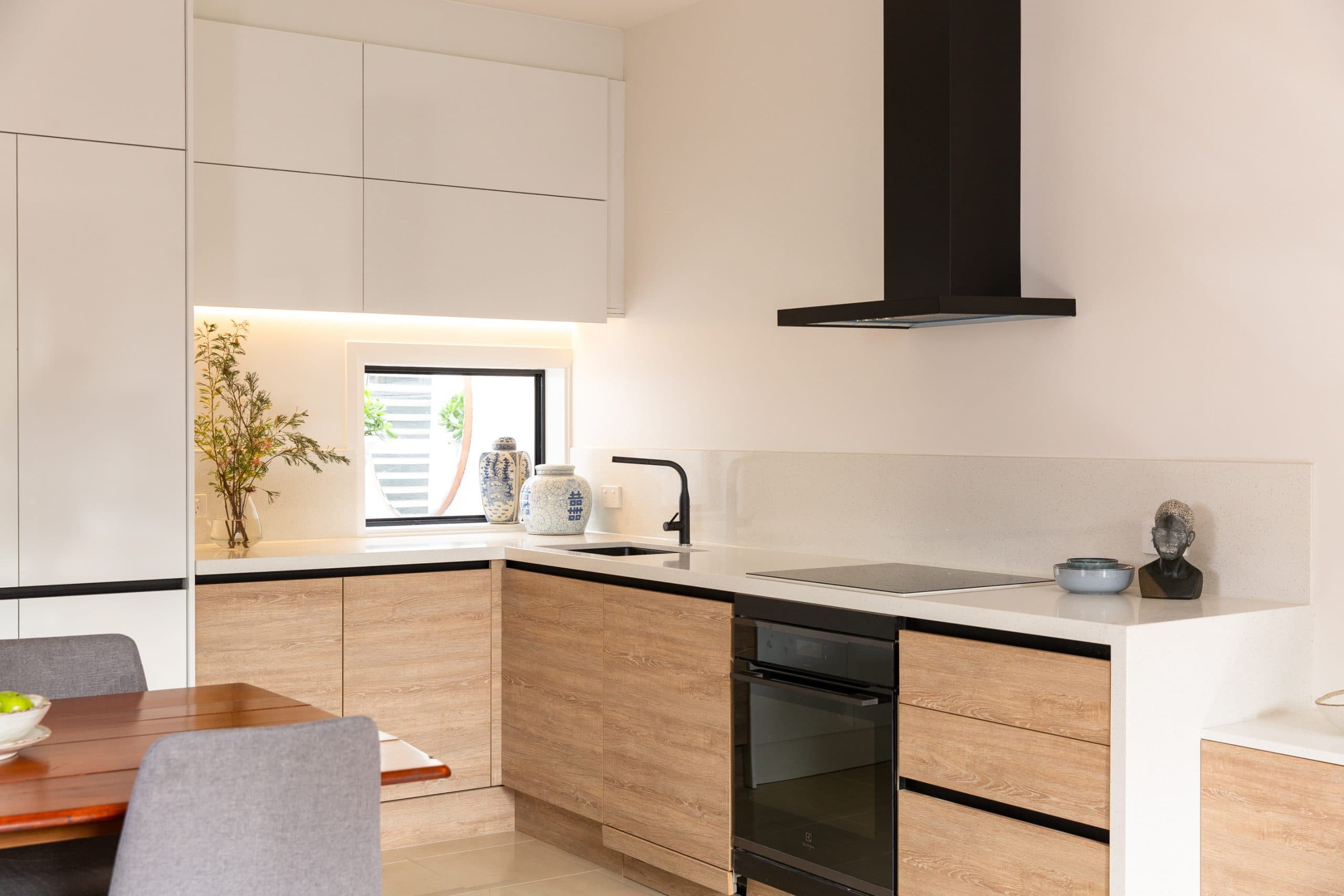 The homeowner’s goal was to create a beautiful functional kitchen and living space but did not want to spend a fortune! He wanted to open up his home, making it more spacious and inviting. Our Moorabbin Designer – Gareth knew he could design a modern, contemporary kitchen that was not only visually stunning but also practical, with ample storage and benchtop space.